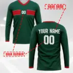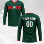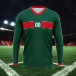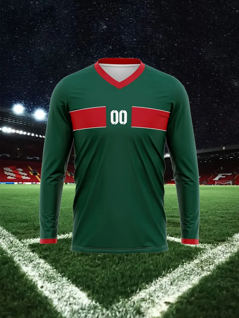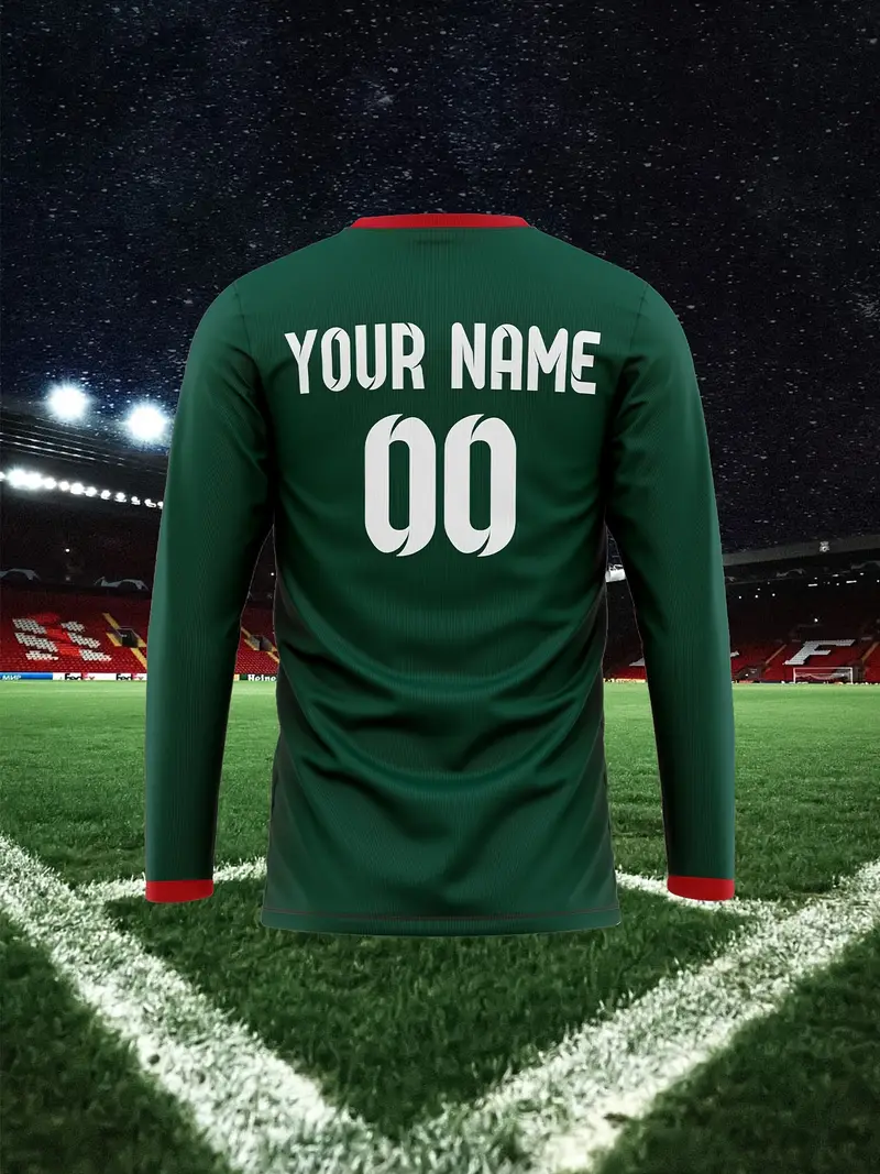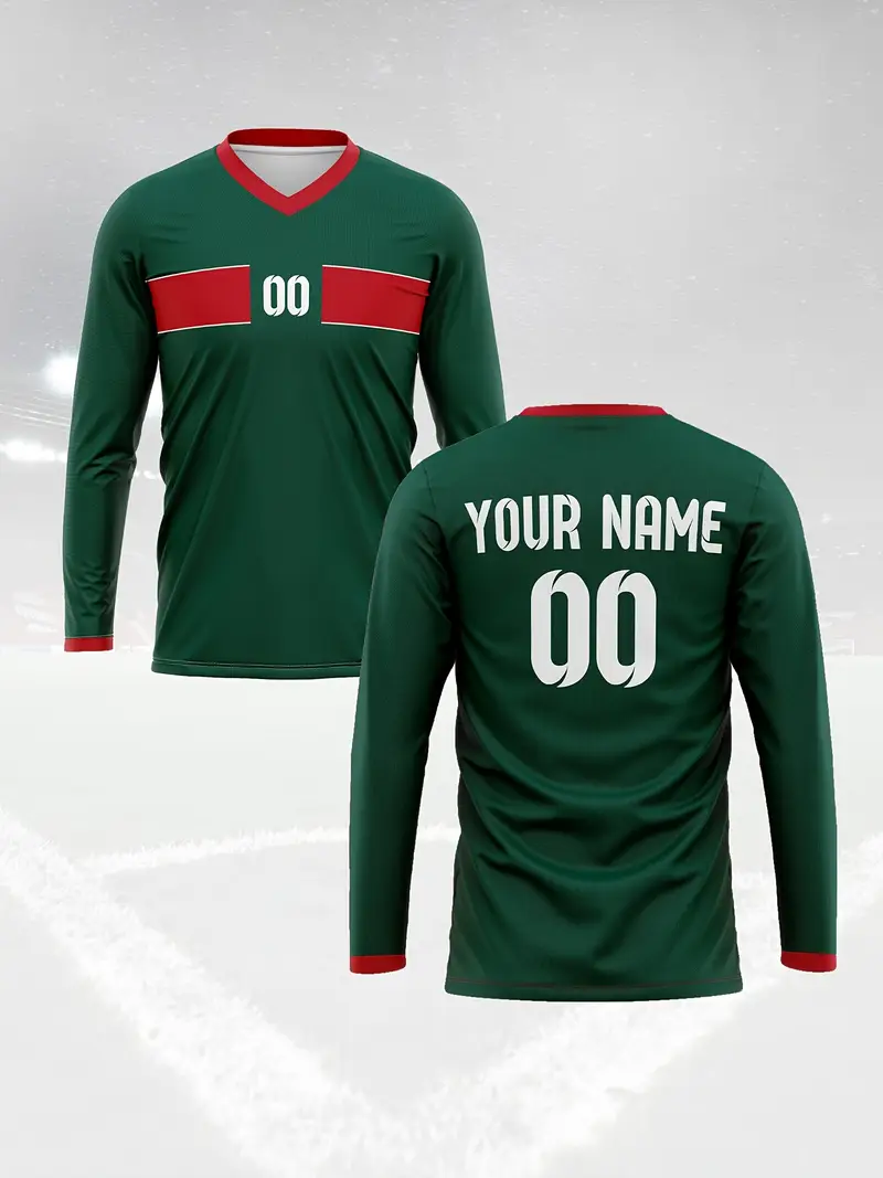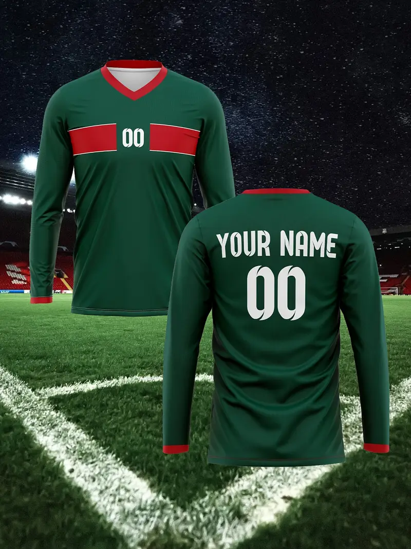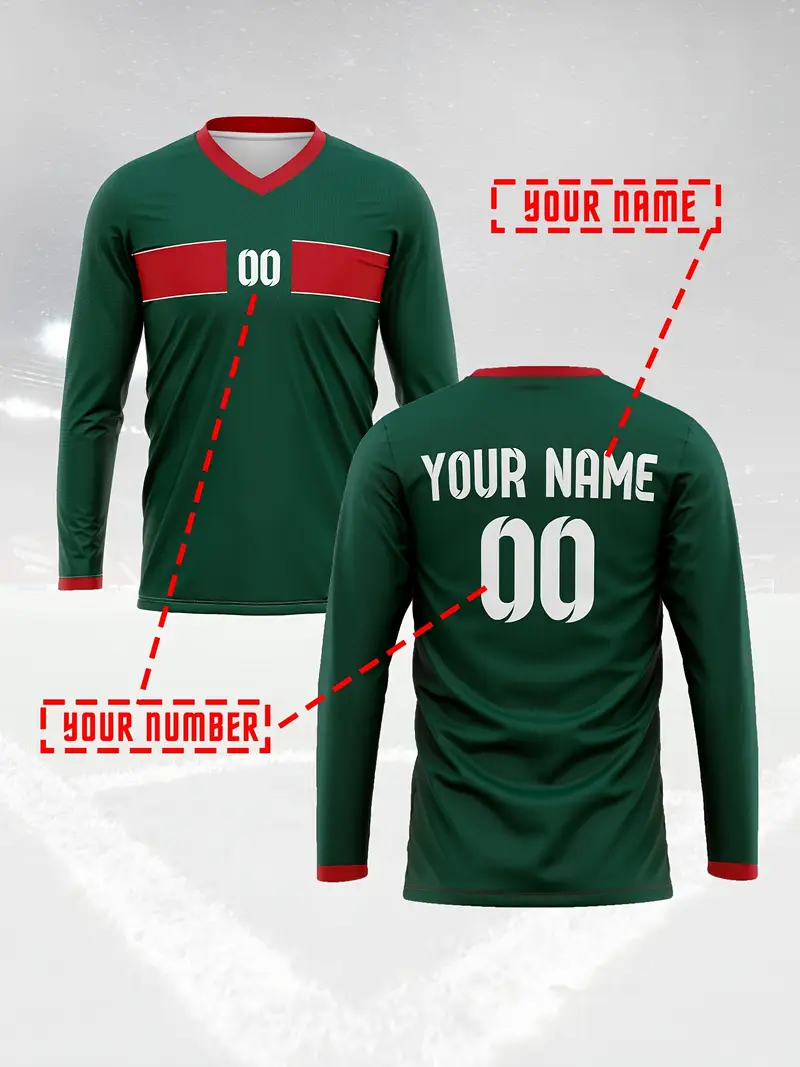 [1pc Maillot de football Marocain personnalisable] 1pc Maroc 2024 Maillot de football personnalisable pour homme, col en V, manches longues, avec nom et numéro personnalisés, tissu en polyester tricoté, coupe extensible pour l’entraînement, le casual, la fête – Style sportif