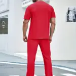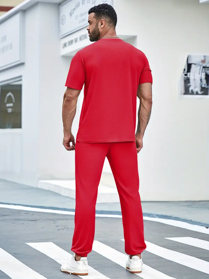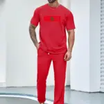 Ensemble décontracté 2 pièces pour homme, imprimé Maroc, en polyester tricoté, avec col rond, poche et pantalon long, légèrement extensible, tenue d’été pour le sport et le fitness, 190gsm