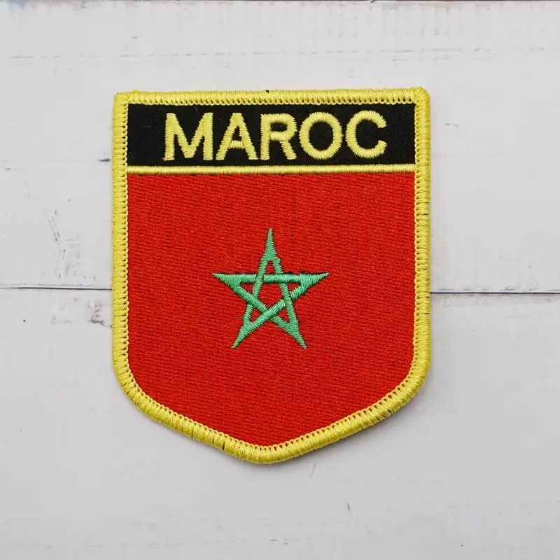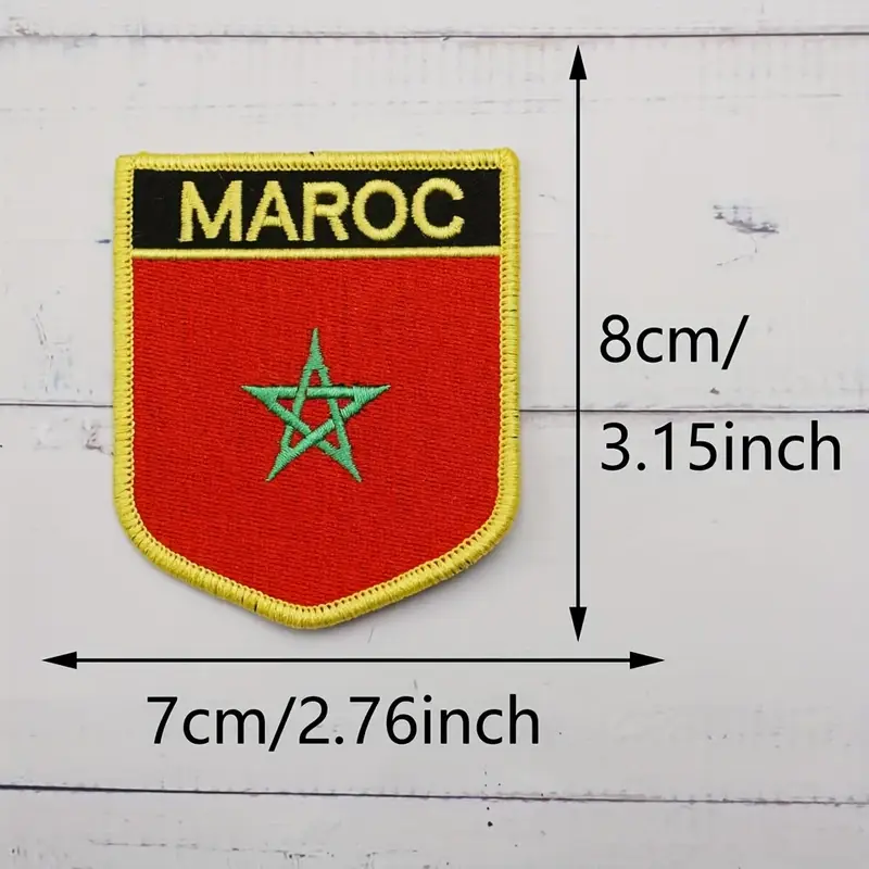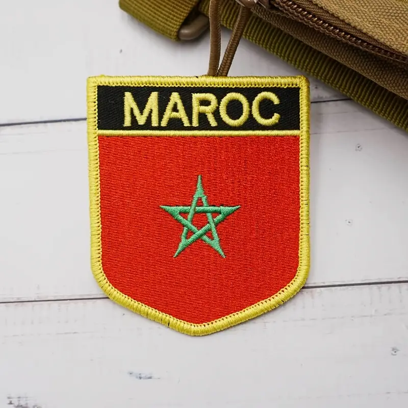 Patch brodé d’étoile de drapeau marocain, badge tactique avec support, couleur mixte, pour chapeau/vêtement.