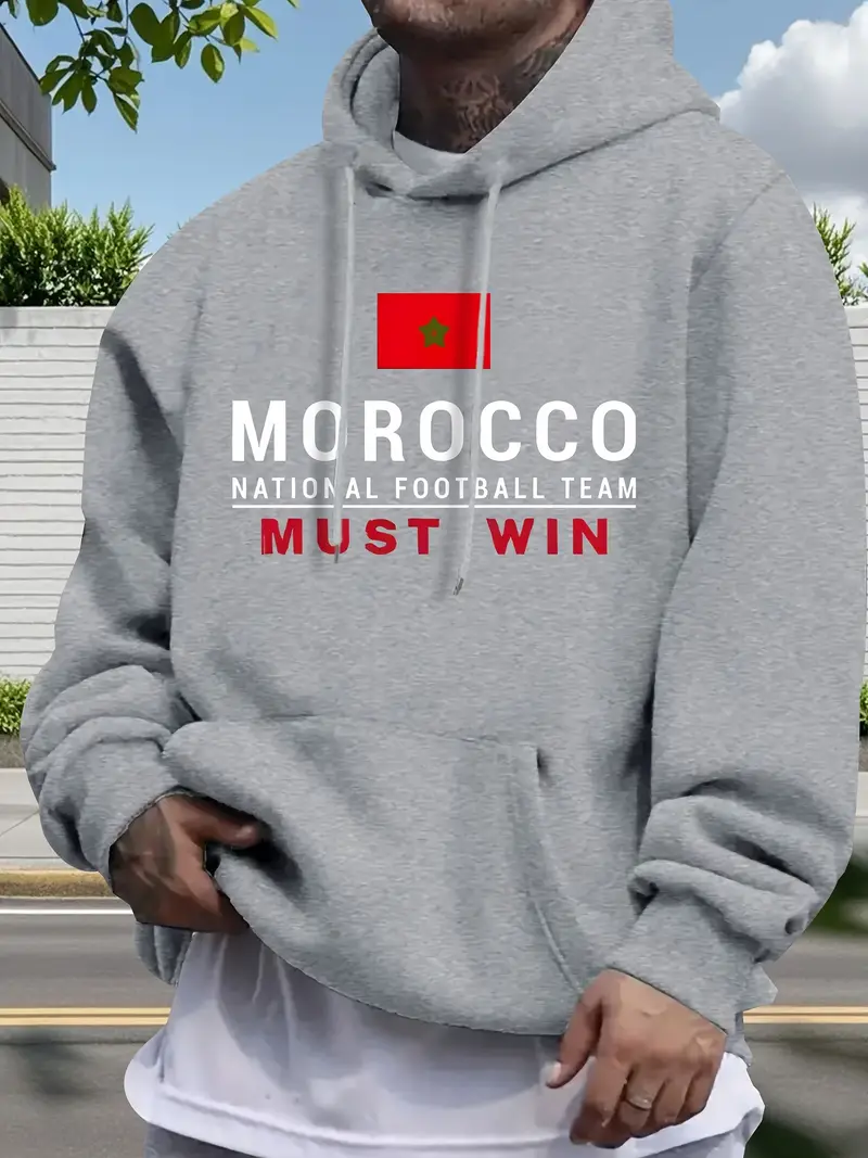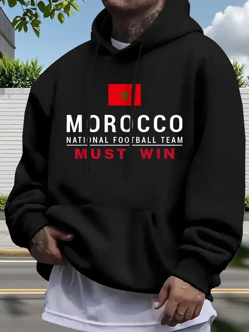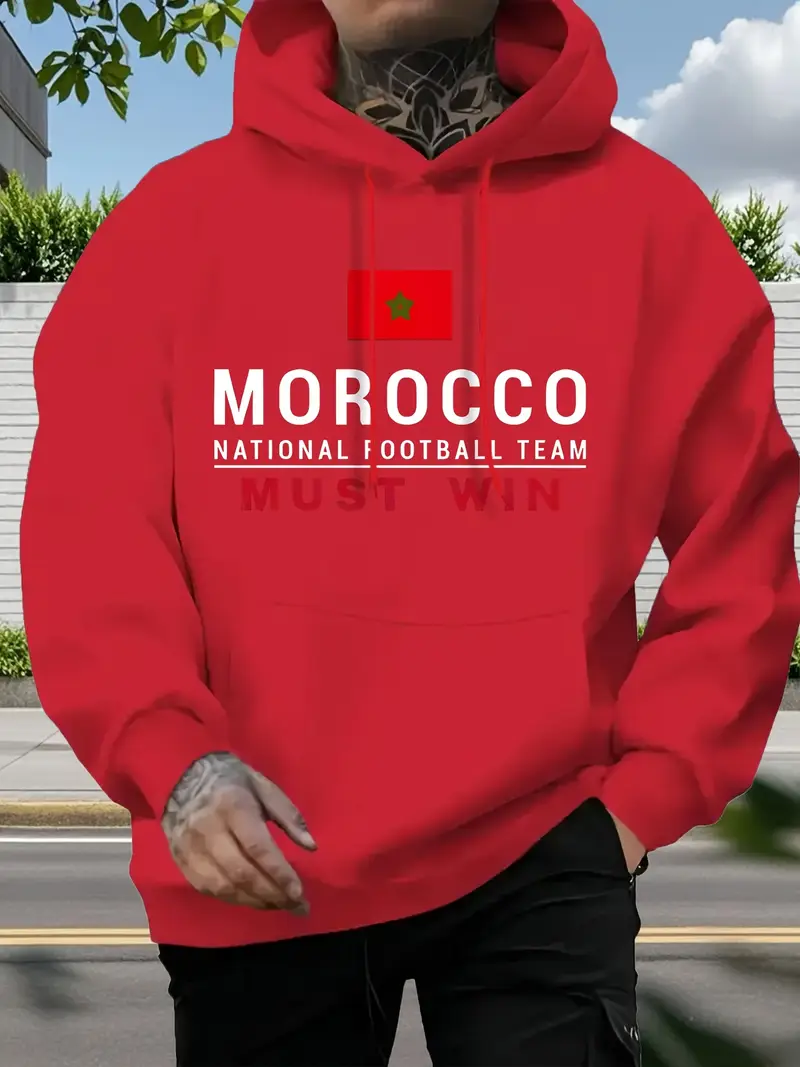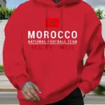 Sweat à Capuche de l’Équipe Nationale de Football du Maroc – Confortable à Manches Longues, 100% Polyester, Style Décontracté avec Imprimé du Drapeau Marocain, Lavable en Machine pour Automne/Hiver