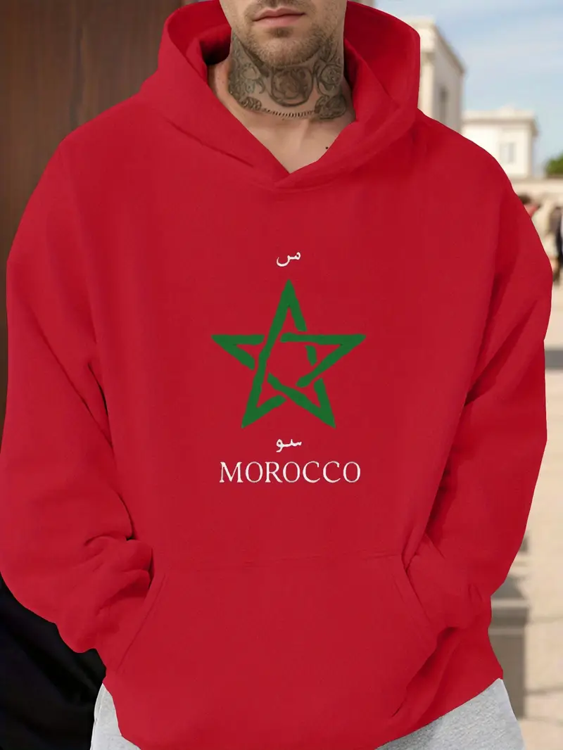 Sweat à Capuche Décontracté pour Homme avec Étoile du Maroc – Gris avec Imprimé Graphique Vert, Coupe Ample, Manches Longues, Tricot en Polyester pour Loisirs Extérieurs Automne/Hiver, Vêtements de Loisirs | Sweat à Capuche Coupe Décontractée | Sweat à Capuche Lavable en Machine, Sweat à Capuche Essentiel