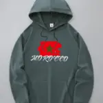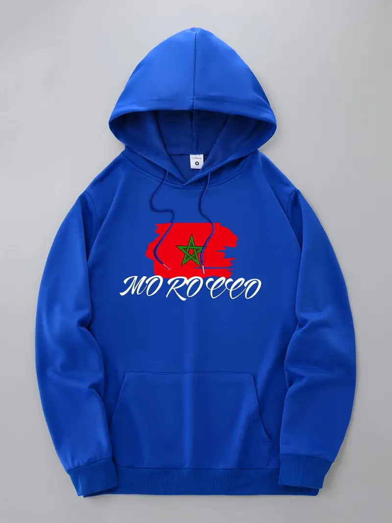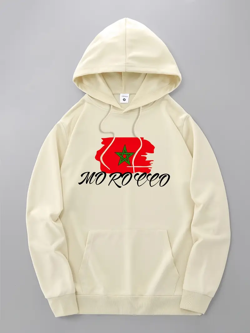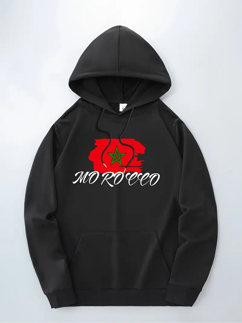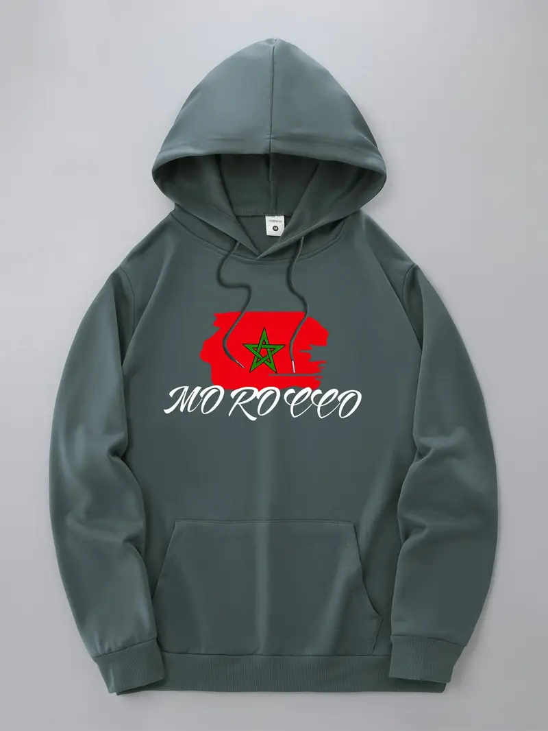 1pc Sweat à capuche décontracté pour homme avec imprimé drapeau marocain – Tissu en tricot polyester légèrement extensible, sweat à capuche coupe standard avec poche