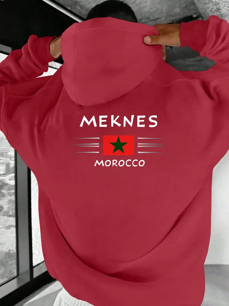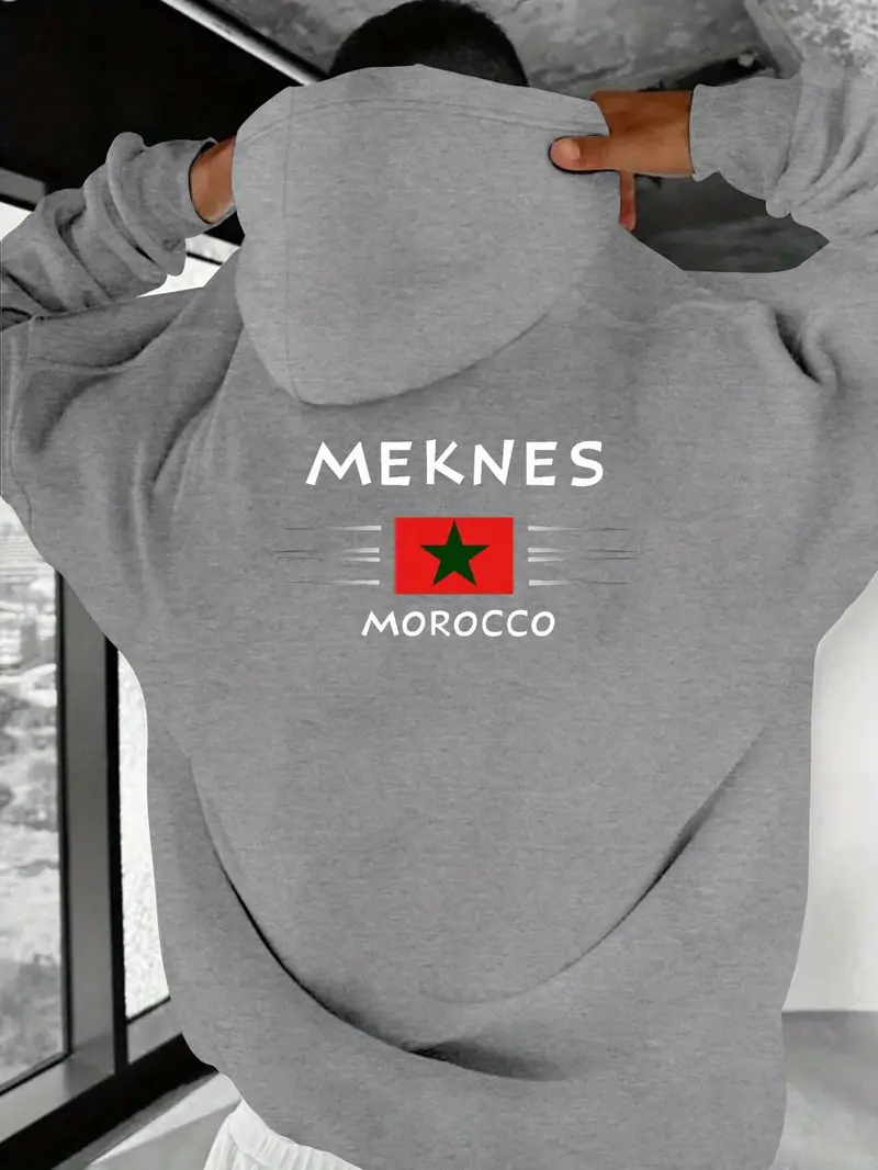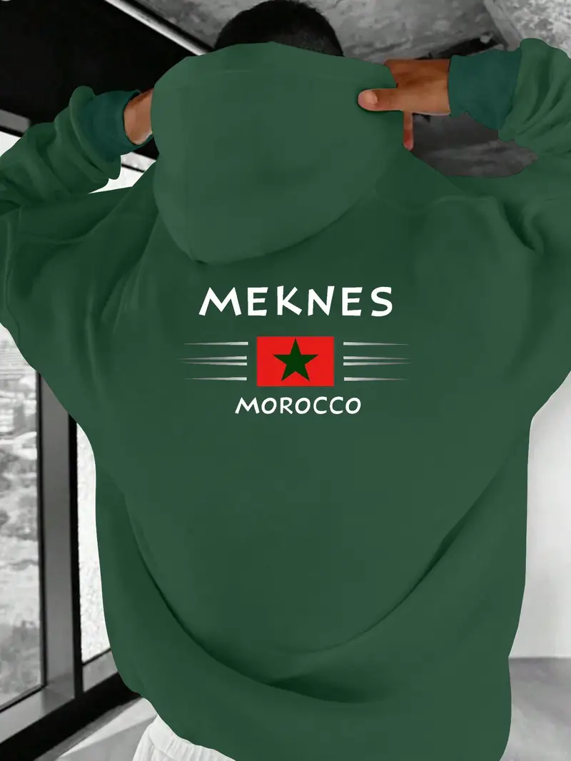 Sweat à Capuche Graphique Homme Meknès Maroc – Pull Décontracté Vert avec Emblème Étoile, Manches Longues, Coupe Ample, Polyester, Lavable en Machine pour Automne/Hiver, Vêtements de Loisirs | Sweat à Capuche avec Emblème Étoile | Sweat à Capuche en Polyester