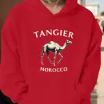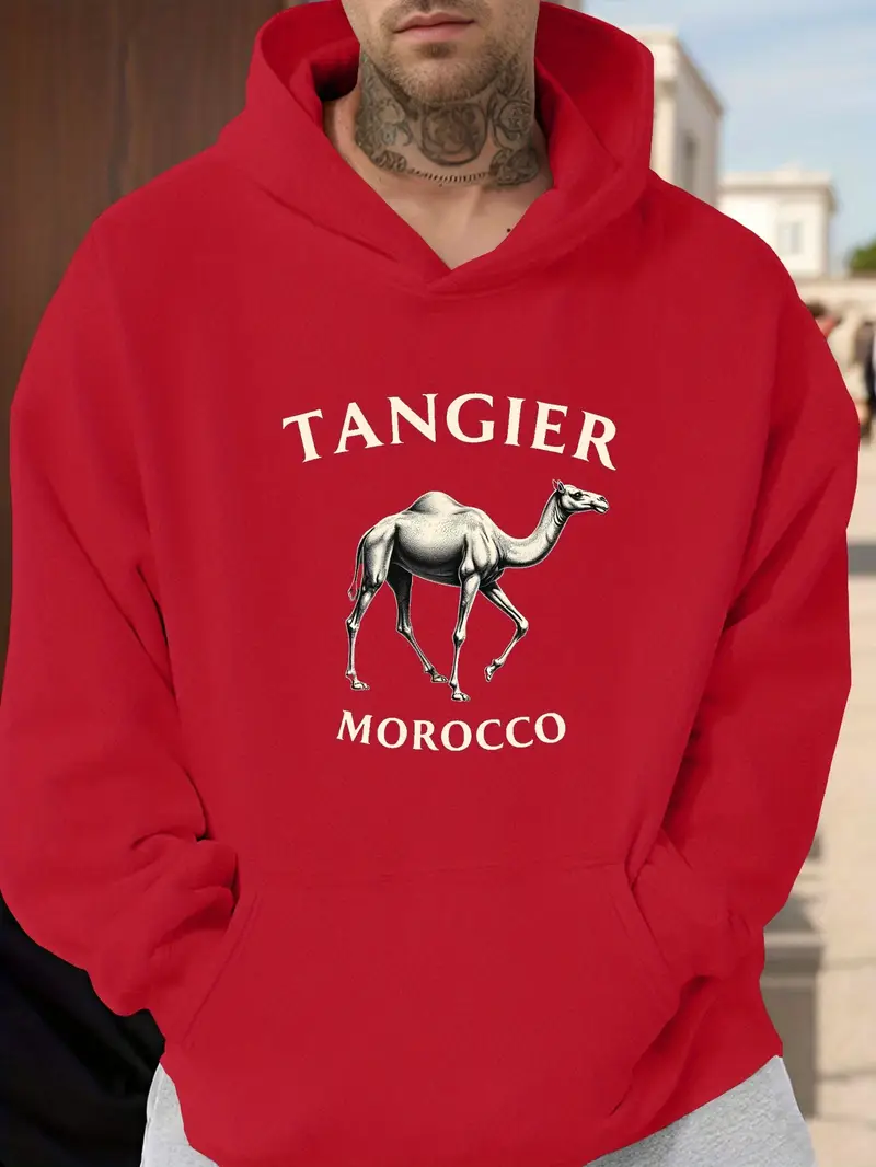 Sweat à capuche décontracté pour homme avec imprimé TANGIER Maroc Camel, 100 % polyester, manches longues, tissu tricoté non extensible, coupe ample avec poches, tenue décontractée pour le week-end automne/hiver.
