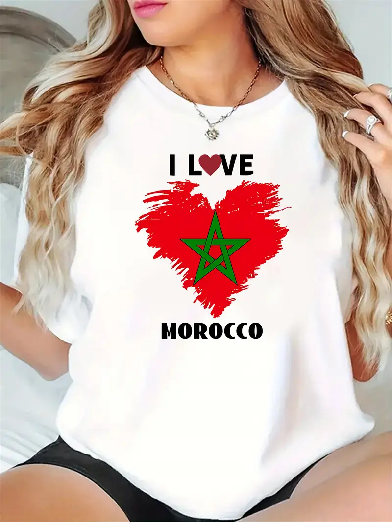 T-shirt Décontracté à Imprimé Drapeau Marocain Chic