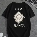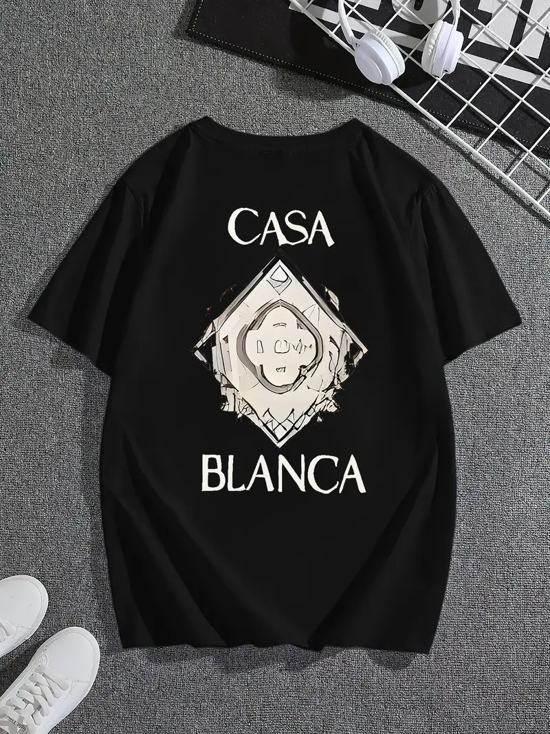 1pc T-shirt Graphique Vintage pour Hommes de Casablanca – Col Côtelé Doux, 100% Polyester, Bleu Clair avec Imprimé « CASA BLANCA » et Design Inspiré du Maroc, Légèrement Extensible, Col Rond, Essentiel d’Été pour Adultes.
